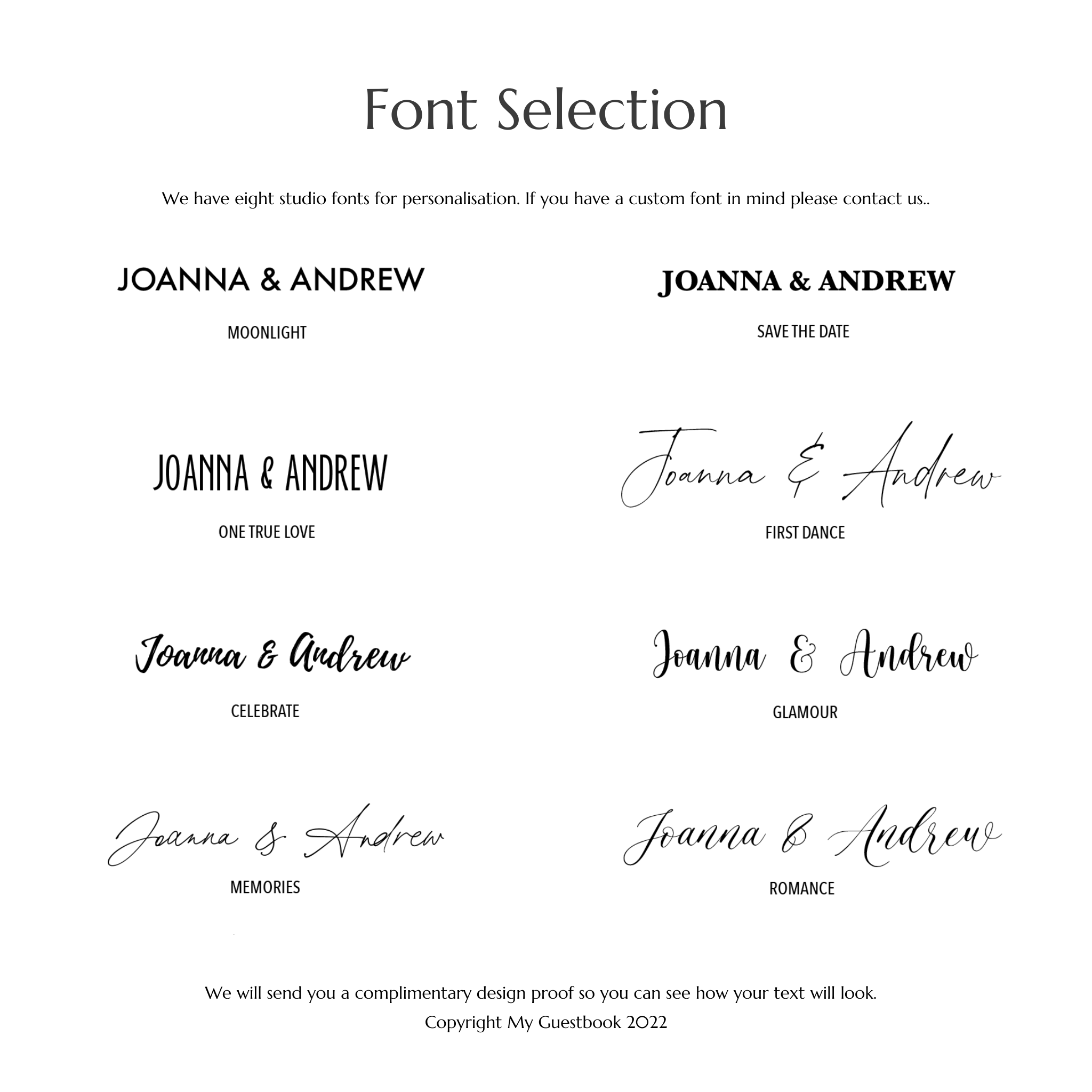 The pages of these books are made from 148gsm luxurious Mowhawk Superfine paper with an eggsehll finish. The pages are unlined so there is lots of space for guests to write freehand messages and get creative.